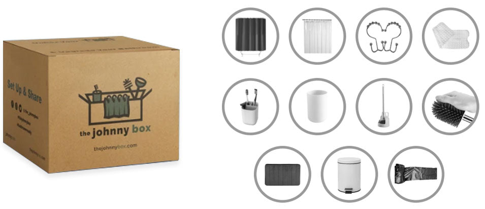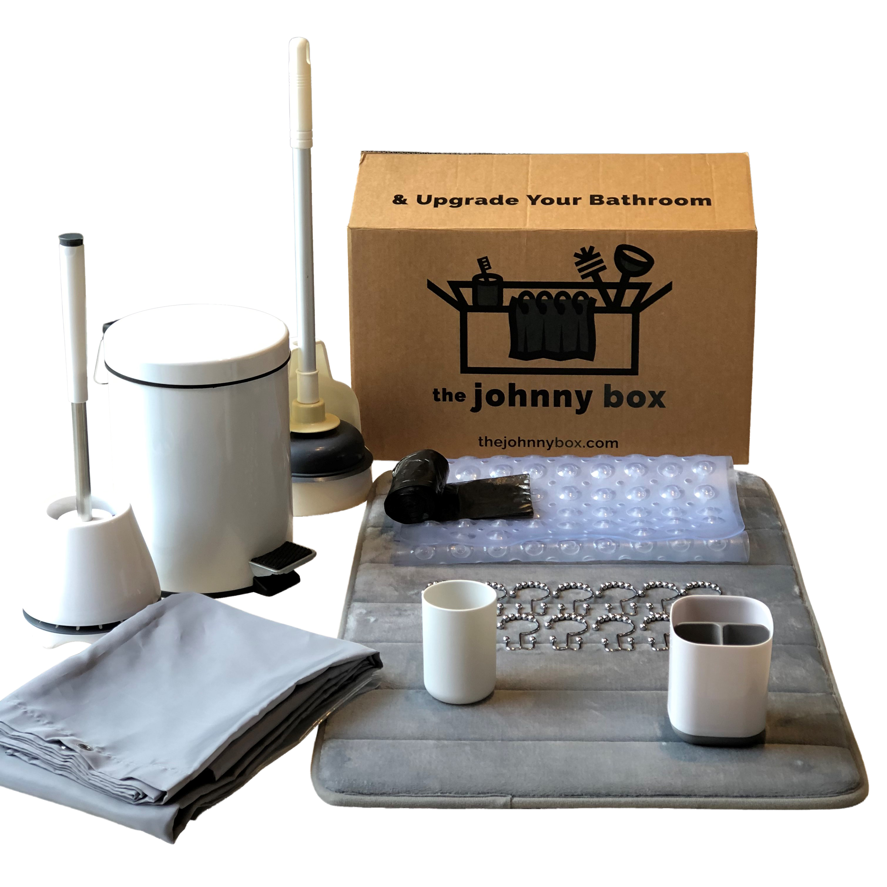 A.Short answer is no. At this time only the complete collection of 11 bathroom accessories are available for purchase. You may purchase individual or bundled add-on or replacement items. These items include: shower curtain liners, bathtub mats, garbage bags. These items may only be purchased with a johnny box™. As our company grows, so will the selection of johnny boxes, accessories and ala carte purchases.